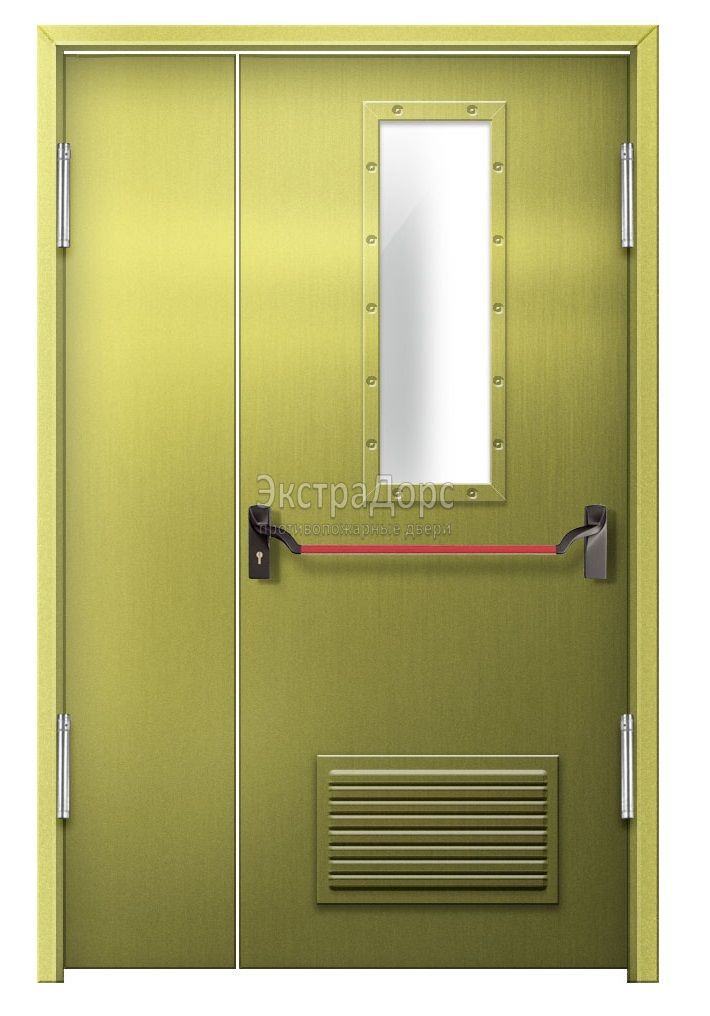 Противопожарная дверь EI 60 дымогазонепроницаемая стальная со стеклом, антипаникой и решеткой в Балашихе