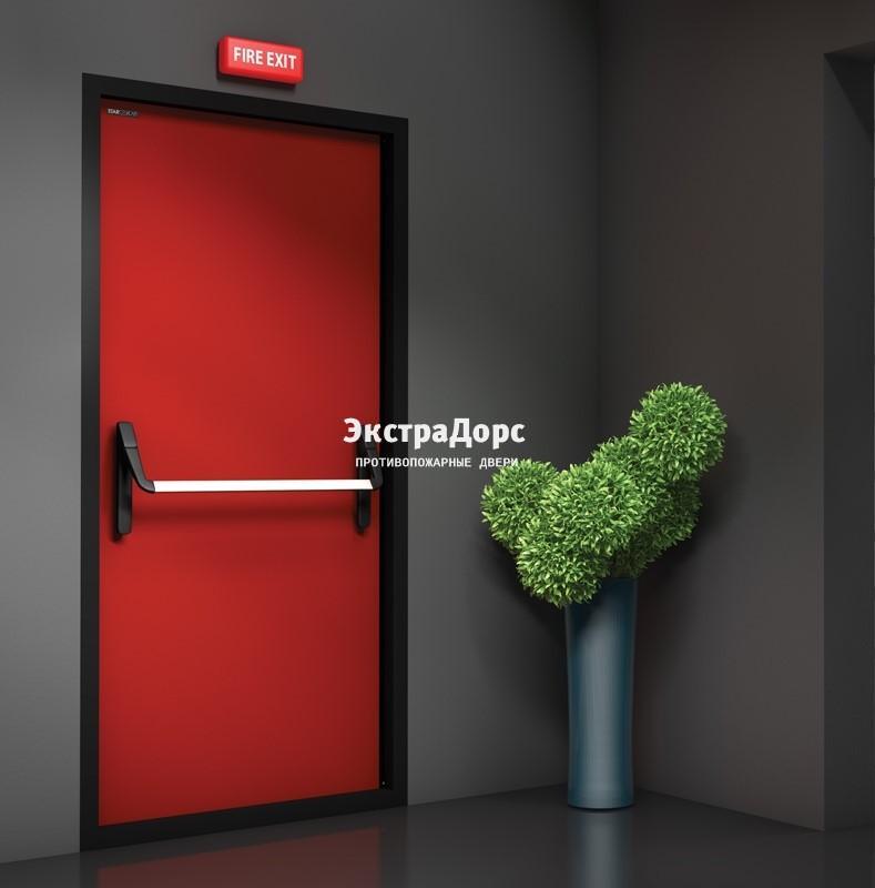 Дверь с выпадающим порогом противопожарная 1 типа красная с антипаникой в Балашихе