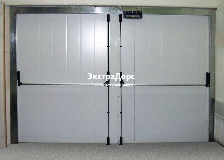 Белые противопожарные распашные ворота с антипаникой в Балашихе