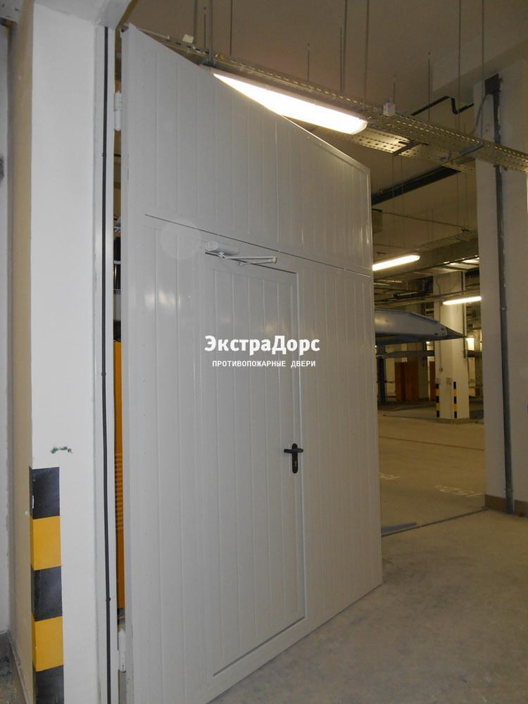 Белые распашные противопожарные ворота с доводчиком в Балашихе