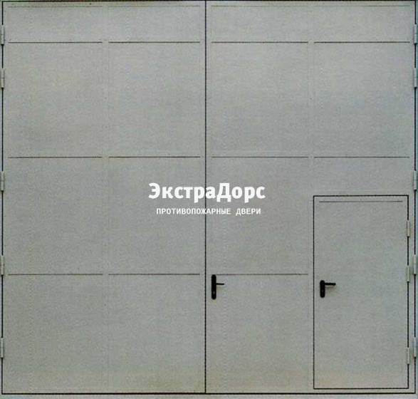 Противопожарные распашные серые ворота с калиткой в Балашихе