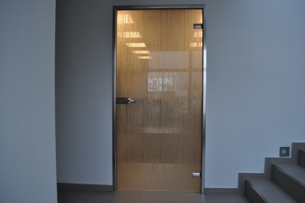 Противопожарная безрамная дверь со стеклом в БЦ в Балашихе