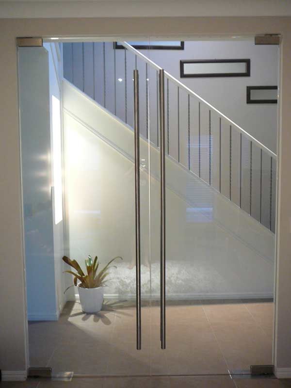 Противопожарная безрамная дверь со стеклом в частный дом в Балашихе